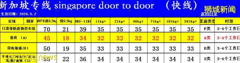(价格表) 空运每天直飞,正常情况都是3-4天到新加坡客户手里