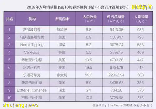 这可不是空穴来风,根据《LaFleur's》杂志发布的《2019世界彩票年鉴》。就2018年全球人均彩票销量而言,新加坡以人均935美元的彩票销量超过去年的冠军美国马萨诸塞州,跃居全球第一,而且比第二位马萨诸塞州人均798美元的彩票销量高出了17.2%。