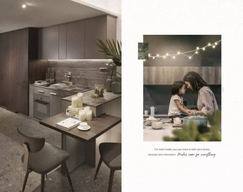 所有单位将备有基本厨房用具、冷气、橱柜、窗帘等,并铺上有印花瓷砖或实木复合地板。