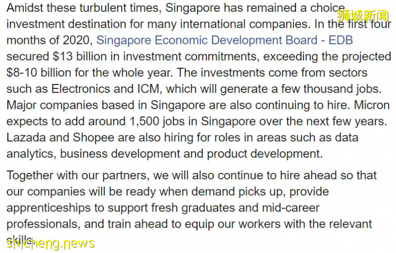 这些投资来自电子和ICM等行业,这些行业将创造数千个就业机会。新加坡的大型公司也正在继续招聘。美光预计在未来几年内将在新加坡增加约1500个工作岗位。Lazada和Shopee也在数据分析,业务开发和产品开发等领域招聘职位。