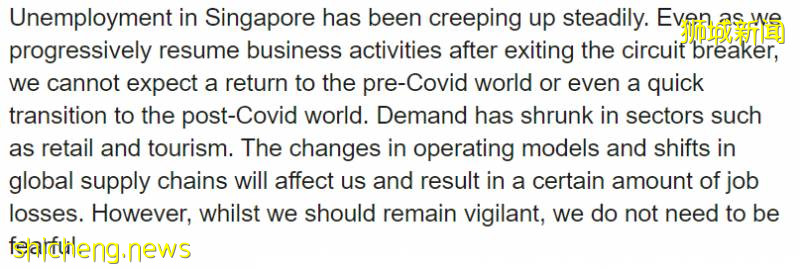 大致翻译:失业率持续在新加坡攀升。即使我们在阻断器结束后,允许更多商业活动的情况下,我们也不可能回会到疫情前的世界,或者很快的进入疫情后的世界。 。。。