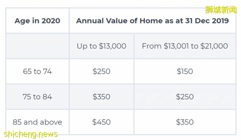 对于年纪大于65岁以上的新加坡人。根据房产年值和年龄段不同,还会有$150 - $450不等的公积金医疗账户填补。