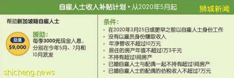 当局估计大约10万名自雇人士从5月起分三次,获得每次3000新币的补贴。