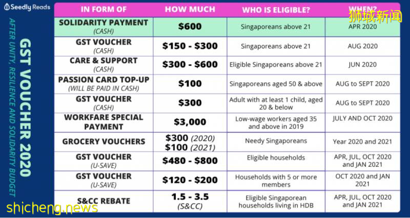 2020年几个财政预算案后,在新加坡到底能领多少钱