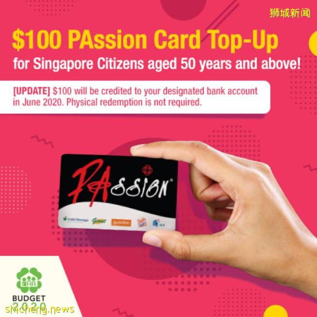 在8月至9月,所有今年年满50岁或以上的新加坡中老年人可收到$100新币的PAssion Card充值。