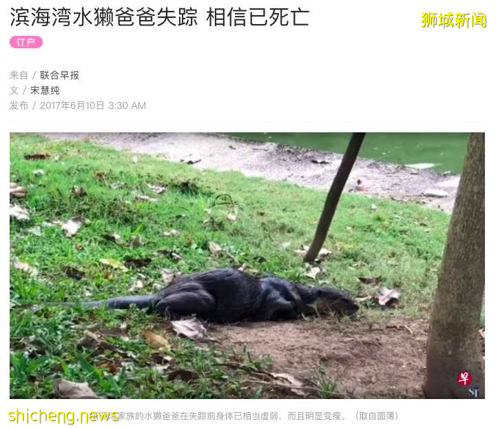 就在吃瓜群众都以为命运多舛的滨海湾家族要迎来兴旺发达的时候,不幸再次降临了这个家族。2017年6月,滨海湾水獭家族的大家长——水獭爸爸不幸去世,死因疑似老鼠药中毒。爸爸这一走,滨海湾家族只留下孤儿寡母相依为命,好不凄凉。