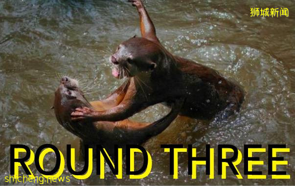 当时,河这头的滨海湾家族正无忧无虑地在草地上打滚儿,河那头的碧山水獭已经蓄势待发。滨海湾家族选择正面对敌率先下水开始进行热身运动,碧山家族也不甘示弱铁头迎战,于是两个家族在河中间展开了一场激烈的角逐,最终以滨海湾家族的失败告终。