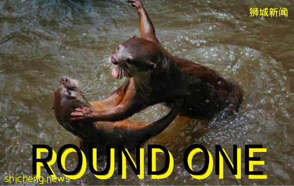 直到你看到新加坡的水獭打架。前段时间,新加坡碧山水獭家族的15只水獭(图右)和滨海湾家族的11只水獭(图左)