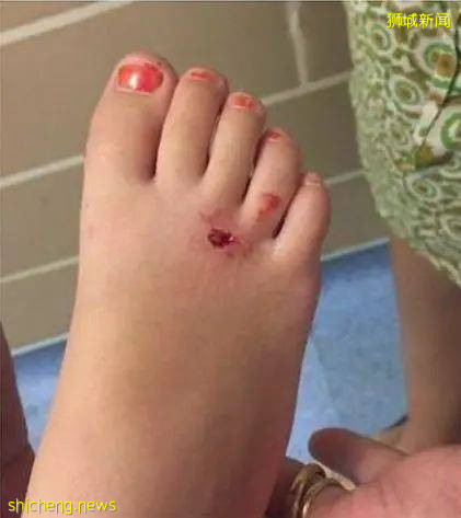 2017年12月,原本在水里跳来跳去的一群水獭中,突然有一只冲上来对着一个法国小女孩的脚背咬了一口;