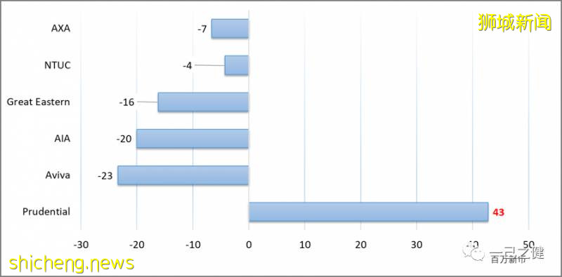 Prudential 是最早参加运营IP长期医疗的保险公司之一,凭借其超强的创新能力和领先的服务能力,其市场份额逐年递增,并在2018年达到22%。如前述,在新加坡运营IP产品的保险公司自2015年开始全面出现亏损,然而值得注意的是经过一系列的整改,在2018年Prudential成为唯一家将长期商业医疗保险业务扭亏为盈的保险公司。即从2017年亏损1495万新币华丽转身为2018年盈利4273万新币。
