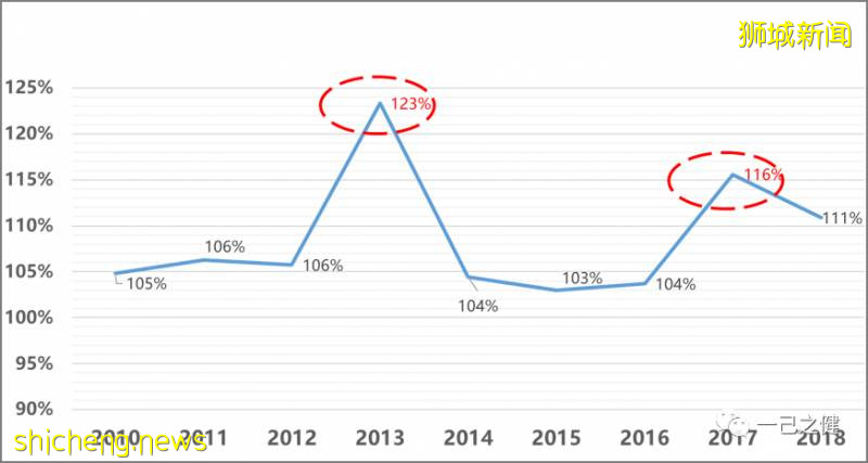 新加坡长期商业医疗保险调费情况新加坡长期医疗保险自2005年就踏上了费率调整的道路,现如今投保人已经习惯了保费调整的现实。尤其是自2015年开始出现行业系统性亏损,保险公司不得不多次对长期医疗保险进行费率调整。过往调费历史中以2008年,2013年和2017年的调费尤为明显(见图4)。在2016-2019年间,私立医院计划和医疗附加险的保费平均每年分别平均上调10%和24%,而最近几年上调幅度更高,尤其是对于购买了零免赔和100%报销的医疗附加险增幅最高,因为私立医院的医疗费用逐年上涨且此附加险的设计会天然导致医疗资源的滥用。图4. 2010-2018年期间整个行业*长期医疗险年度件均保费上调比例(年龄标准化后)