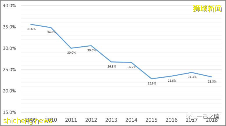一般地,在业务发展初期,不论是内部管理成本,还是外部渠道费用都会很高,比如AXA在2016年进入长期医疗险市场时,渠道成本占毛保费的比例高达53%,Prudential在2009年时的渠道成本比例约47%。但随着有效业务占比的增长,渠道成本占比也会逐渐降低。从整个行业来看,综合费用率(内部管理成本和渠道成本加和)从2009年的35.6%降至2018年的23.3%,其中渠道成本约占65%-70%左右。综合费用率降低一方面是因为保险公司的业务管理效率在逐年提高提高,另一方面也是因为渠道成本逐年在降低。图9. 2009 – 2018新加坡长期医疗险行业综合费用率情况