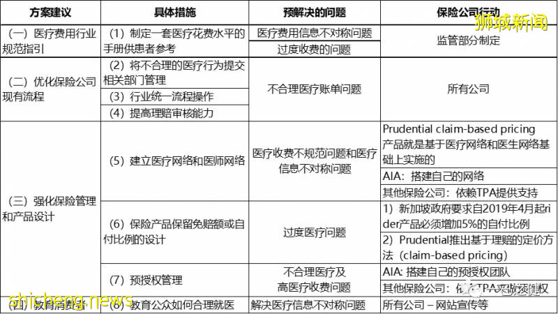 Prudential率先找到解决亏损的突破口在行业综合费用率逐年下降的情况下,依然在2015年出现了行业系统性亏损,这就引起了政府和监管部门的高度重视。于是在 2016年2月新加坡政府主导成立医疗保险专项工作组(HITF),目的是为了解决商业医疗保险亏损和费率上调过快的问题,并旨在提出短期和中长期方案应对这些问题。历时9个月的研究调查,HITF工作组提出了四大方案八个具体措施来应对发现的问题。其中以友邦“搭建自己的医疗和医师网络并全面推广预授权管理”以及Prudential的“基于理赔的定价方法”两大整改措施最为典型。