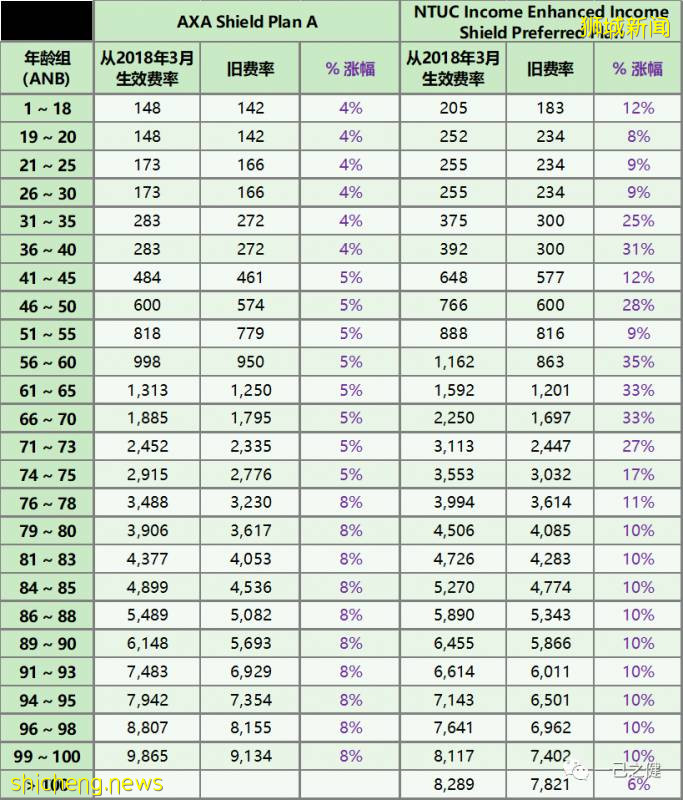 以最近2018年3月的一次调费为例,下图展示了AXA和NTUC两家公司的调费情况: