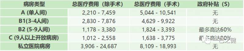 如果以一新币兑换5人民币计算,那么在新加坡选择一个4人间(B1病房)的平均住院费用大约在1.4万-4万之间。如果住院伴随着手术,那么住院费用大约在2.3万-5万元。这个费用基本上是国内公立医院国际部甚至昂贵私立医院的医疗费用水平。