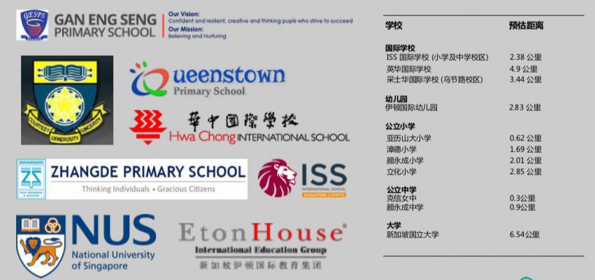 嘉御苑附近坐落着伊顿国际幼儿园、伊顿国际学校、ISS国际学校、英华国际学校、颜永成中学、克信女子中学、新加坡国立大学等众多知名学校,让孩子赢在起跑线。