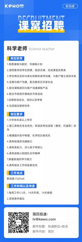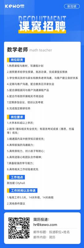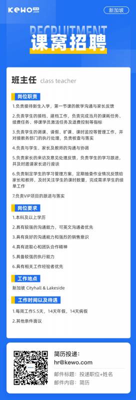 招兵买马,与你同行!课窝招贤纳士:想在新加坡工作的小伙伴们看过来