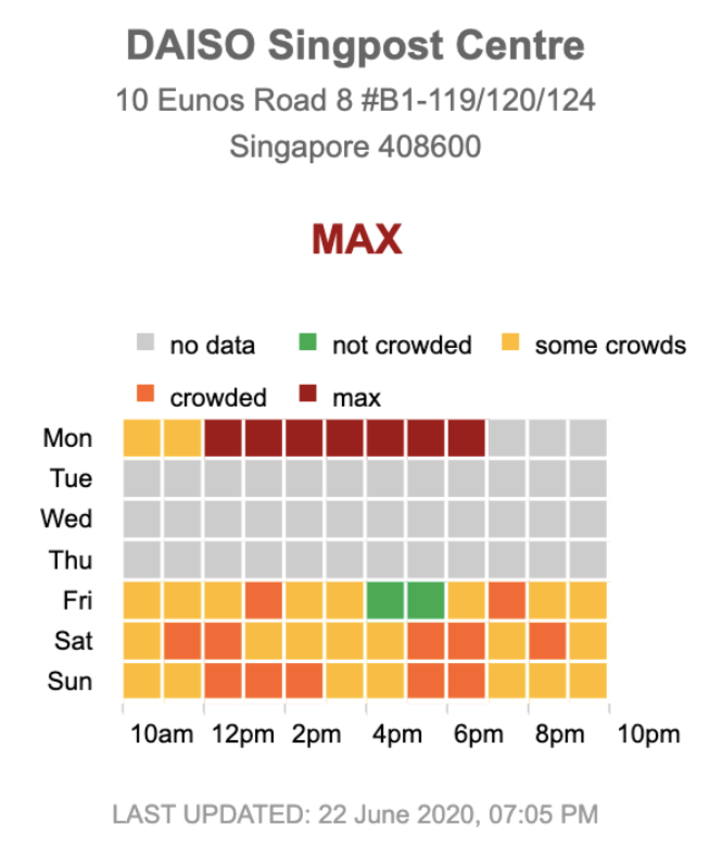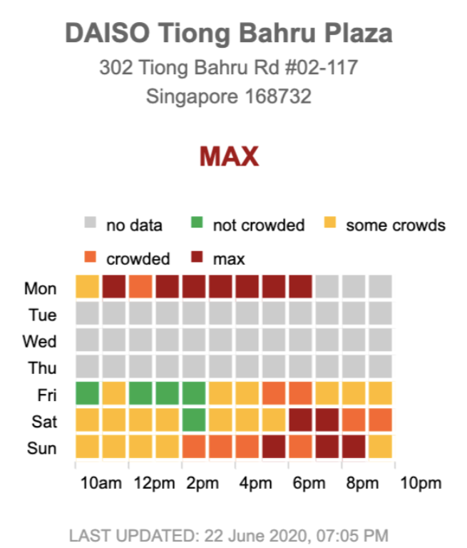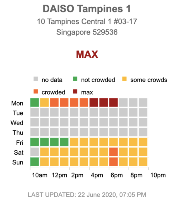 该网站在其Daiso和Threeppy的所有22家商店中提供实时人群级别更新。