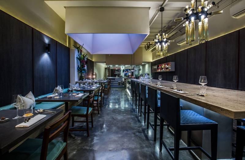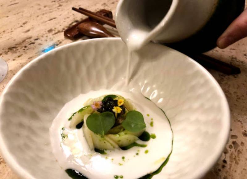 如果烧烤不是你的菜,你还有第二个选择,主打创新菜的2018新加坡新晋米其林一星餐厅:Nouri。同样是开放式厨房设计,让客人在品味时,欣赏主厨精湛的烹饪,近距离与主厨交流。餐厅整体氛围温馨舒适,令人感觉自在放松,真正宾至如归般的体验。