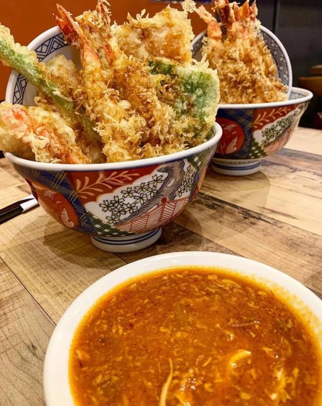 天妇罗与辣椒螃蟹口味的碰撞会有怎样的新鲜感呢?可以来Don Meijin 丼名人试一下哦。天妇罗炸得酥脆可口,一点油腻感都没有,配上辣椒螃蟹酱汁后口感层次丰富。