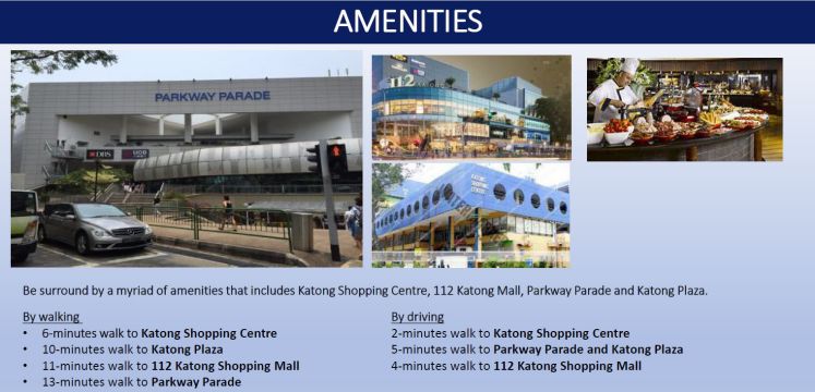 东海岸是新加坡美食天堂,可以享受出名的路边小吃或传统美食如东南亚特色娘惹菜,或者您有时候想小资一下区现代风格潮人咖啡馆打发下午时光,住户可以到马林百列市镇中心去,商场有大型的百汇广场Parkway Parade、112加东、加东村Katong village、加东商场Katong Plaza,Kinex等等。