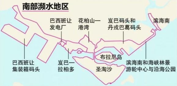 新加坡市区重建局URA致力于打造集生活时尚与文化遗产特点的南部濒水地区,在丹戎巴葛、岌巴、布拉尼岛和巴西班让等码头迁移到大士后,南部濒水地区(Greater Southern Waterfront)将腾出约1000公顷土地,加上岌巴俱乐部和圣淘沙地区,共有2000公顷的土地供未来发展。