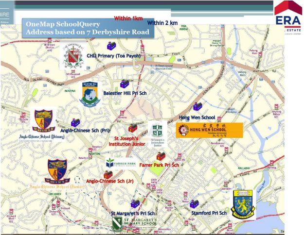 子女教育方面,靠近受欢迎的政府学校和国际学校,CHIJ小学(大巴窑区),ACS Junior School英华美学校,花拉公园小学,ST Margaret小学,圣约瑟书院中学Saint Joseph’s Instition Junior,宏文学校等,请参考下图