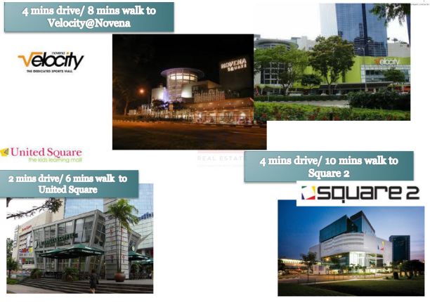 方便步行到靠近的大型购物商场,像Novena Square,United Square,[email protected],Square 2 商场,包括大型超市,小孩的补习中心,托儿所,餐馆,快餐店,银行分行,便利店都有,生活极为便利,全方面满足您生活上的需求