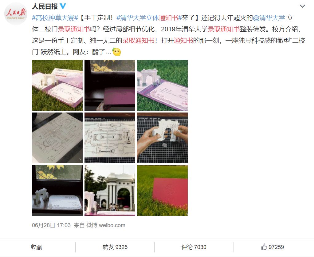 说清华大学的通知书最美