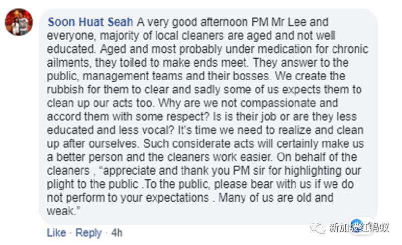 这位网民说,大多数清洁工都是上了年纪,没有受过很高教育的人。有些甚至患有慢性疾病,必须工作才得以维持收入。他们对公众、管理团队和老板负责。我们却制造垃圾让他们清理。可悲的是,一些国人还希望他们为自己陋习“善后”。