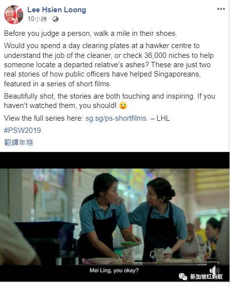 短片抢眼的原因除了题材最接地气,内容出现了国人几乎每天都会光顾的小贩中心和最常接触的收碗盆员工,更重要的是李显龙总理今早在拥有120多万粉丝的个人面簿上分享了这个视频。有了总理做代言人,这个在Gov.sg面簿、Youtube频道放了一周观看人数却不多的短片,迅速走红。