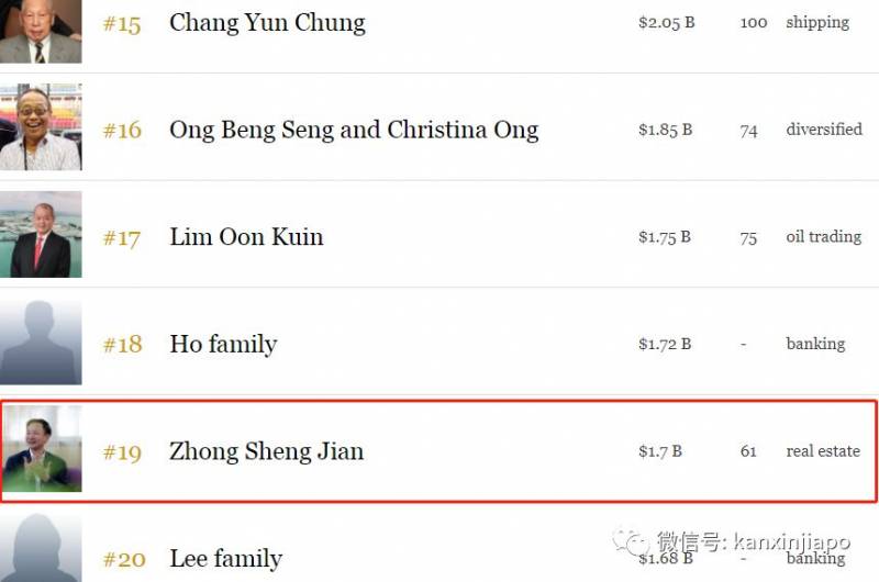 仁恒置地是间新加坡公司,董事长钟声坚是福布斯新加坡榜排名前20的富豪,身价17亿新币!