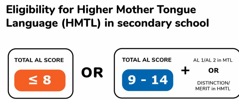 在积分等级制下,选修中学高级母语的条件,是小六会考四个科目总成绩须不超过8分;或总成绩介于9至14分,但当中在母语科考取AL1或AL2等级,或高级母语科考取特优或优。