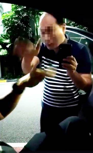 林年进打开大马司机车子前方的乘客车门,质问司机为何非法载客。他的举动被大马司机拍下后放上网。(视频截图)