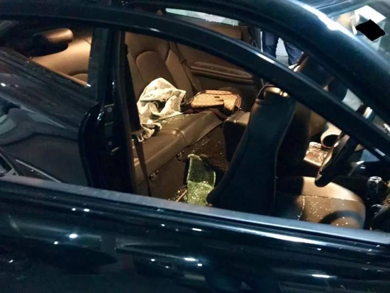车内一片狼藉,车座上布满了车窗玻璃碎渣