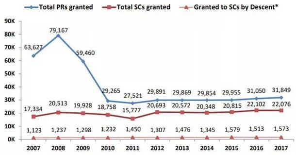 然而,2018年,新加坡永久居民新批人数迎来了9年来的新高,3.2万多人,提高了十多个百分点!