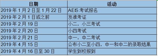 注:错过或没有通过 9 月份 AEIS 考试的学生也可以选择参加来年 2 月下旬的 S-AEIS 考试(The Supplementary Admissions Exercise for International Students)。小五,小六,中三和中四的年级不能报考,其它的报名申请程序和 AEIS 类似。
