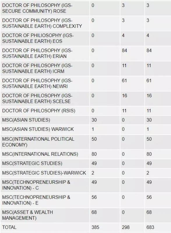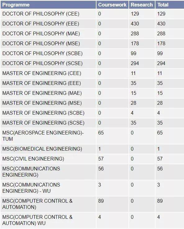 南洋理工大学今年公布了2019-2020年硕士博士招生统计数据,让我们一起来看看各院系/专业今年都收录了多少学生。