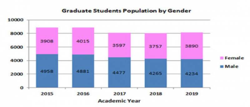自2017年起,在就读本科的人数中,男生比女生多1000多人。