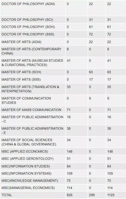 从最新的图表看到,2019-2020学年获得研究型硕士学位录取的学生共3010名,获得授课型硕士学位录取的学生共4414名,获得研究生文凭录取的学生共700名。