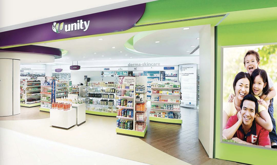 有的霸级超市里面还设有Unity药房,例如宏茂桥中心底楼的霸级超市里就有一家Unity,售卖各种保健品和药物。(没错!Unity药房也是职总旗下的!)