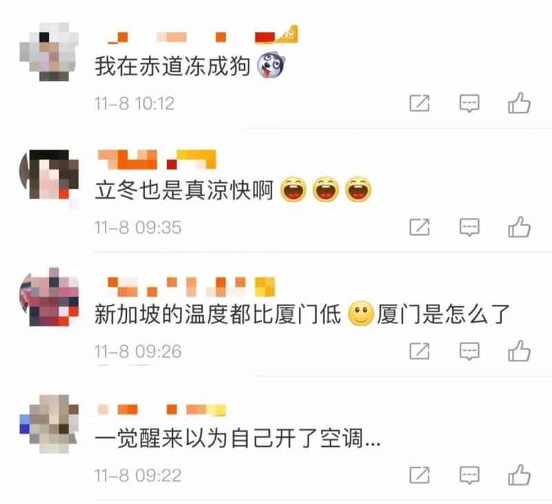 很多小伙伴也是吃了一惊,在赤道旁的我们居然比在厦门的朋友提前入冬了!