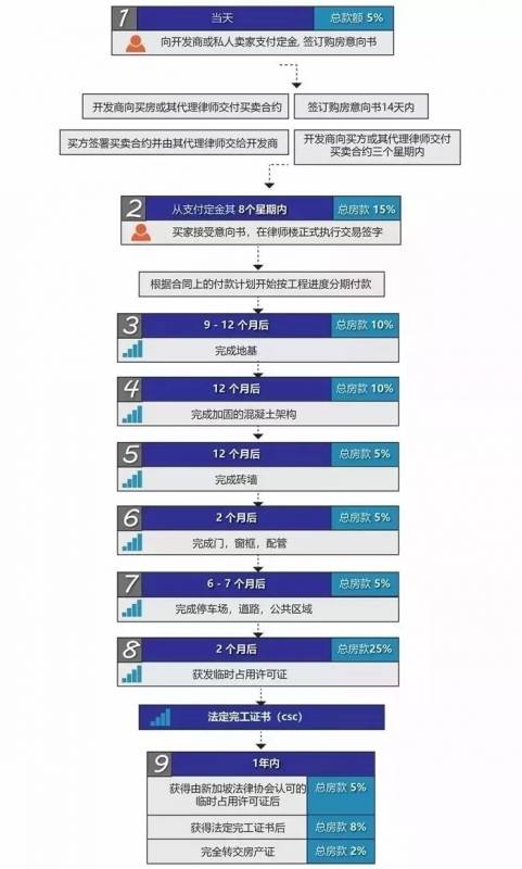 新加坡政府也制定了一套非常人性化的分阶段付款服务,按照项目建造进度付款,这样可以确保不会出现烂尾楼的情况。