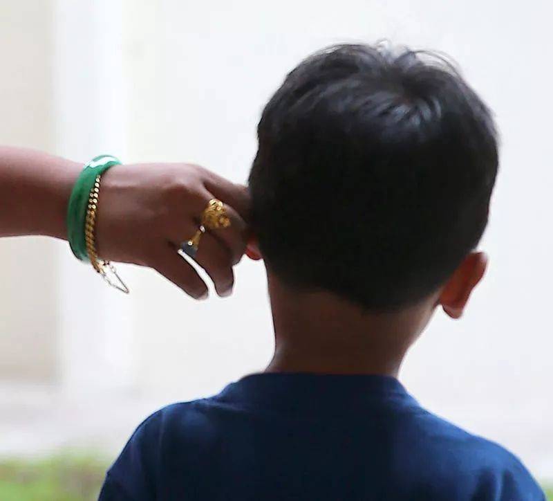 女佣因不耐烦而捏了双胞胎兄弟其中一人的左耳。