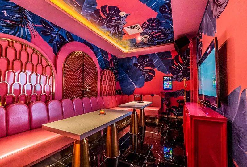 不用担心,如果你喜欢更少女的房间,那么还有2间粉红色的热带雨林豪华包房,散发着浓厚的Ins风。粉色搭配金色,少女心都是时尚的。