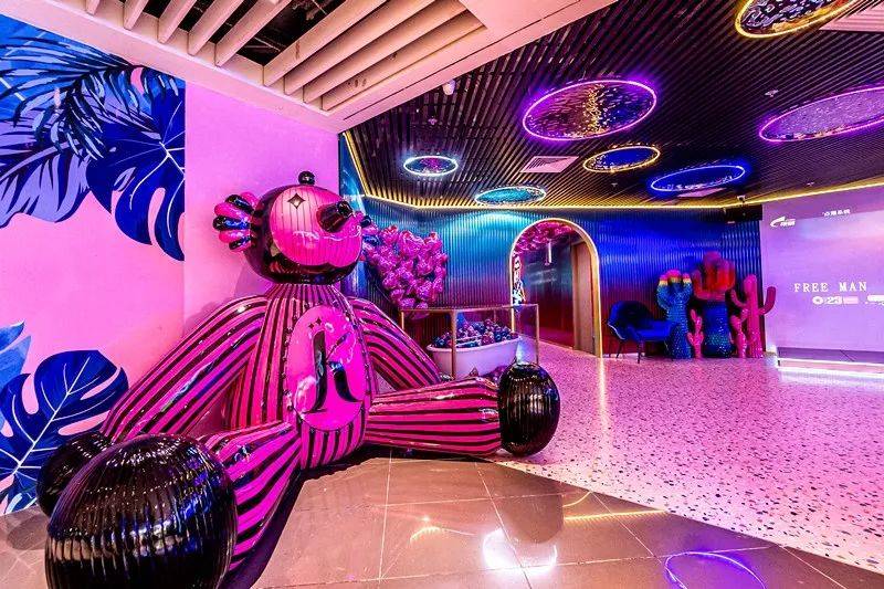 巨型的前卫泰迪熊,充满心型气球的走廊,刚走到门前就瞬间被吸引。