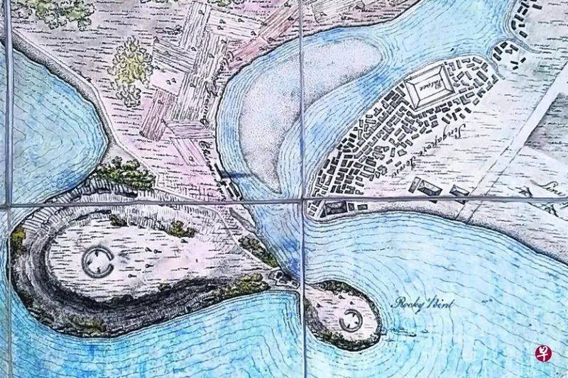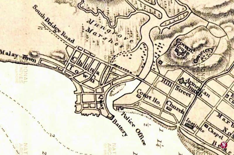 1819年新加坡河南岸遍地沼泽,居民大多在北岸。