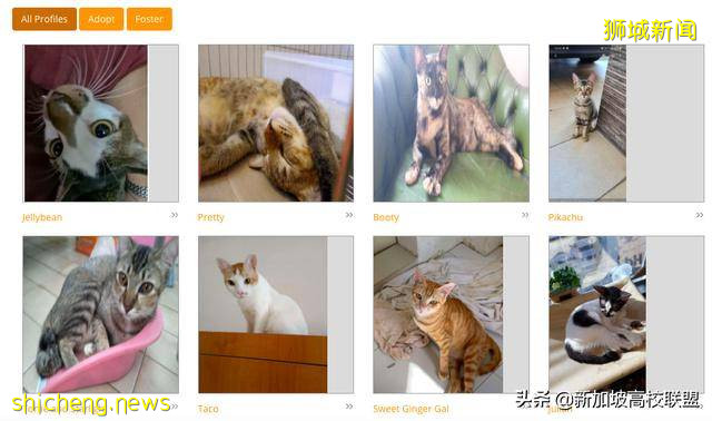 Cat Welfare Society 的领养/寄养猫猫网页截图,来源:CWS