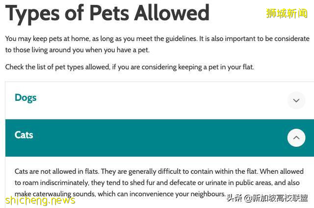 HDB对不能养猫的解释,来源:hdb.gov.sg