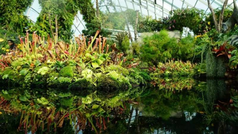 世界最大的玻璃温室花穹模拟了地中海气候,来自5大洲的3万余株花卉植物在这里肆意生长,花卉布置会与不同的节日主题相呼应,不论什么时候到这里,都能收获别样的惊喜。